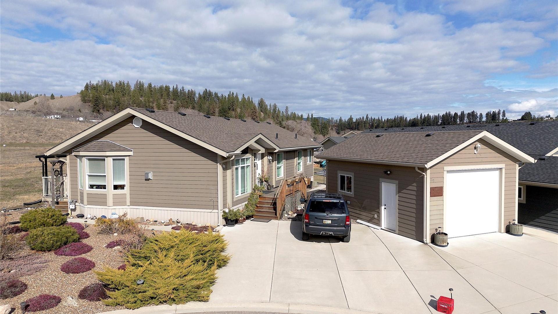 Great location! Beautiful well kept home at the end of a quiet cul-de-sac! Open plan with island kitchen, formal dining space, and bay window! Living room features large windows and a cozy gas fireplace! The kitchen has a huge island with barstools, counter cooktop, wall oven, stainless appliances, and skylights too! The primary bedroom is a generous sized with ensuite and walk-in closet! The oversized ensuite features double sinks and a full tub and shower. Bedroom 2 is perfect for guests, and there is a good sized den/office just off the kitchen. Lots of options including Crown moldings, phantom screens, pot lighting, and a covered back deck with screened in section too! Pride of ownership shines through on this one. No/low maintenance yard. Detached garage/shop with high ceilings has its own electrical panel and heater. Lots of parking for 3 or more vehicles or RV. Small gardening shed too! A wonderful set up for retirement or a good starter for a family as the den could be a third bedroom. Built in 2016 with all the bells and whistles. Neat and clean! Pet ok with restrictions. No age restriction. Best part is, it backs onto open spaces! Move-in ready! No age restrictions. 2 pets up to 25lbs. Coyote Crossing Villas is a family friendly manufactured home park! Head Lease in place until 2047. Affordable Pad fee is $500/month.
